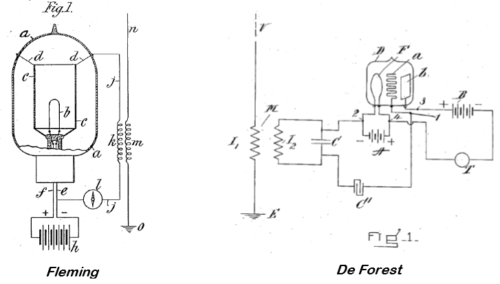 A case from more than a century ago provides a classic example of the difference between patentability and FTO. In 1880, Thomas Edison discovered that an electrical current will flow in a vacuum from a heated filament to a positively charged electrode. After the discovery of the electron in 1897, this "Edison Effect" was finally explained as being due to thermionic emission of electrons from the filament. In 1904, the English engineer J. A. Fleming, who had worked with Edison and with Marconi, was working on improvements in radio receiving apparatus, and came up with the vital insight that since in the Edison Effect, the electrical current only flows in one direction, it could be used to rectify high-frequency alternating current. Based on this realization, he invented the first practical vacuum tube, and in November 1905, he was granted a patent on his "Fleming valve" (U.S. Pat. No. 803,684). The Fleming valve comprises a sealed evacuated vessel (a), a first conductor (b) and means for heating it, a second electrode (c), and external electrical connection (j) that completes the circuit between the two electrodes.